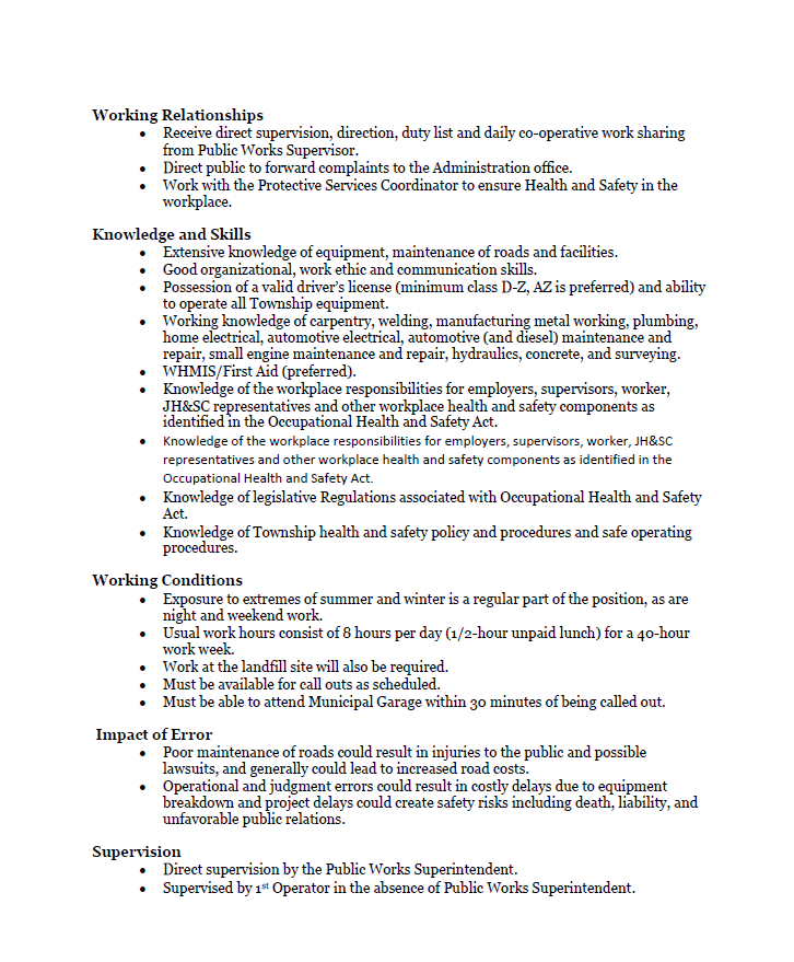 Information collected will be used in accordance with the Municipal Freedom of Information and Protection of Privacy Act for the purpose of job selection.